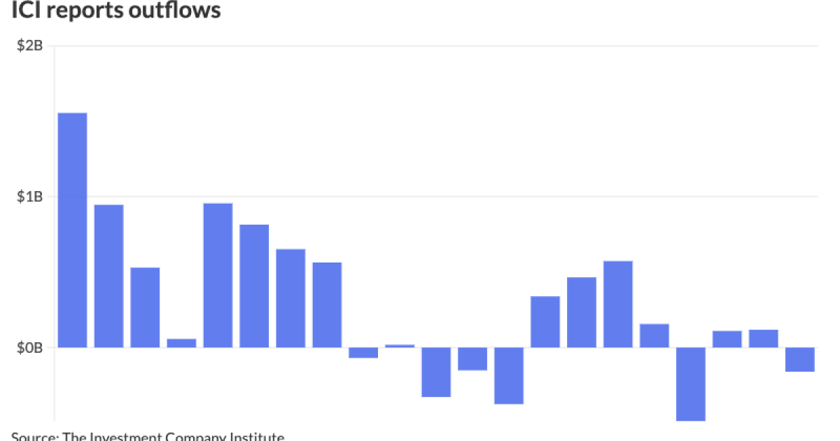 The Investment Company Institute reported Wednesday $160 million of outflows into municipal bond mutual funds for the week ending June 26 following $118 million of inflows the week prior.